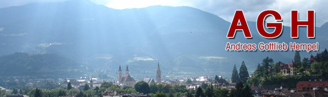 Andreas Gottlieb Hempel Prof. Dipl.-Ing. Dr.arch. Architekt / Journalist u. Publizist / Diplom-Sommelier AIS / Dipl. Genussbotschafter S�dtirol / Dipl. Natur- u. Landschaftsf�hrer / Dipl. Bierexpert Via Otto von Guggenberg Str. 46 I-39042 Bressanone/Brixen (BZ) Tel. +39 0472 679076, mobil +39 349 7969334, info@agh.bz / www.agh.bz